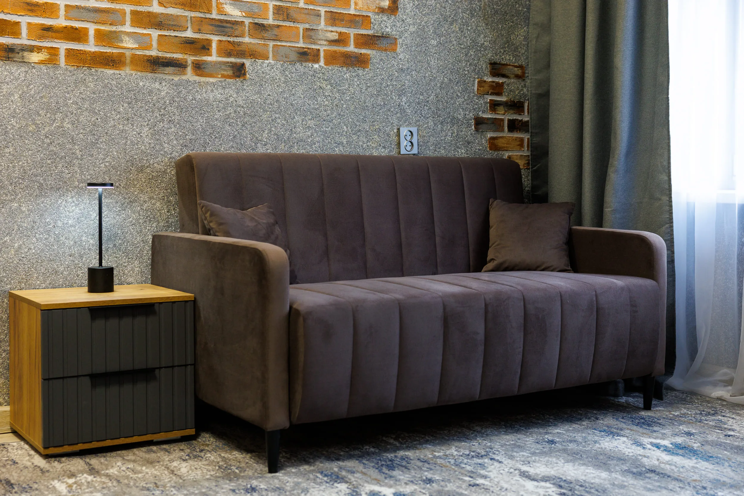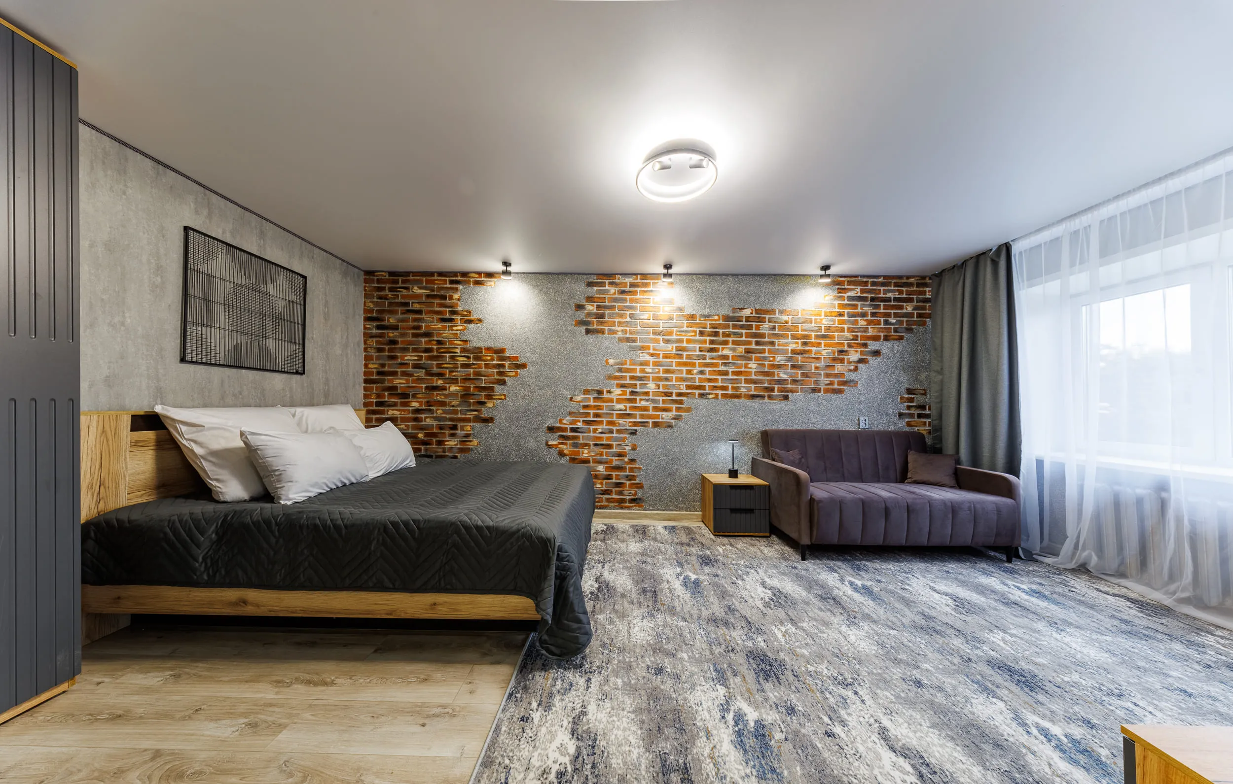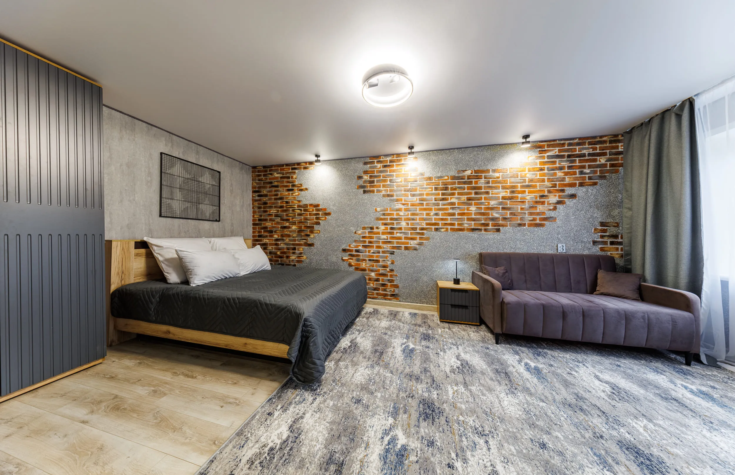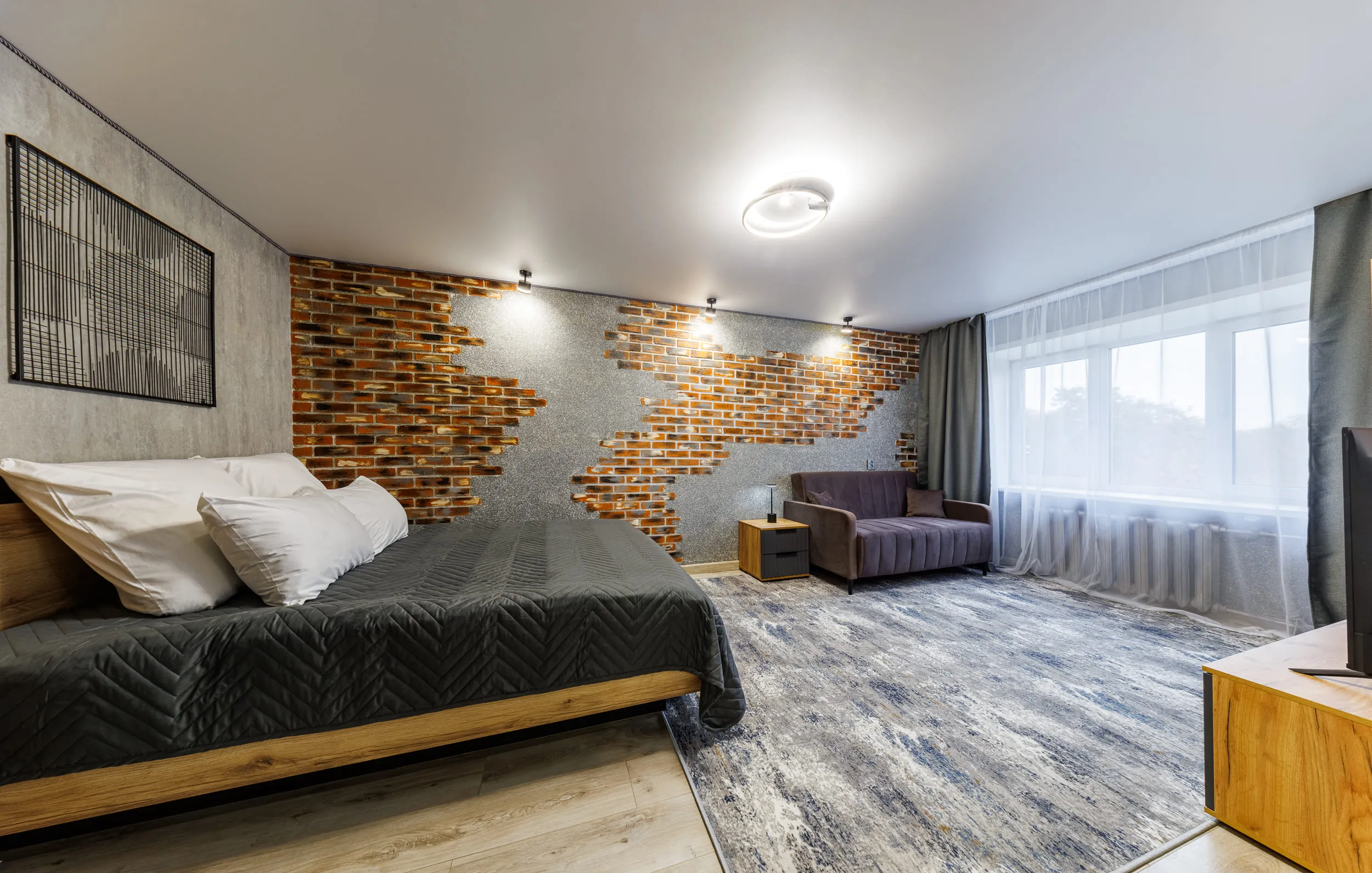 - Двуспальная кровать и раскладной диван