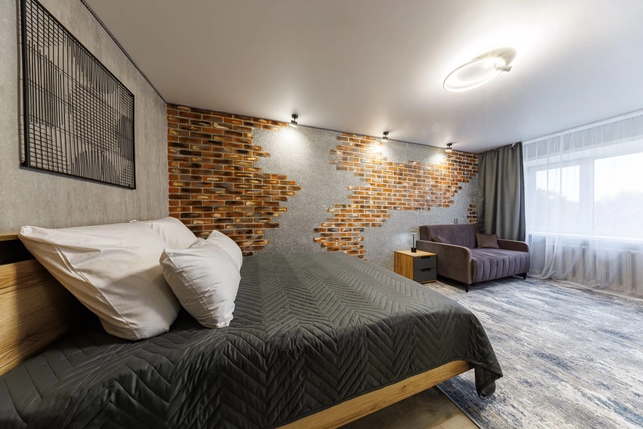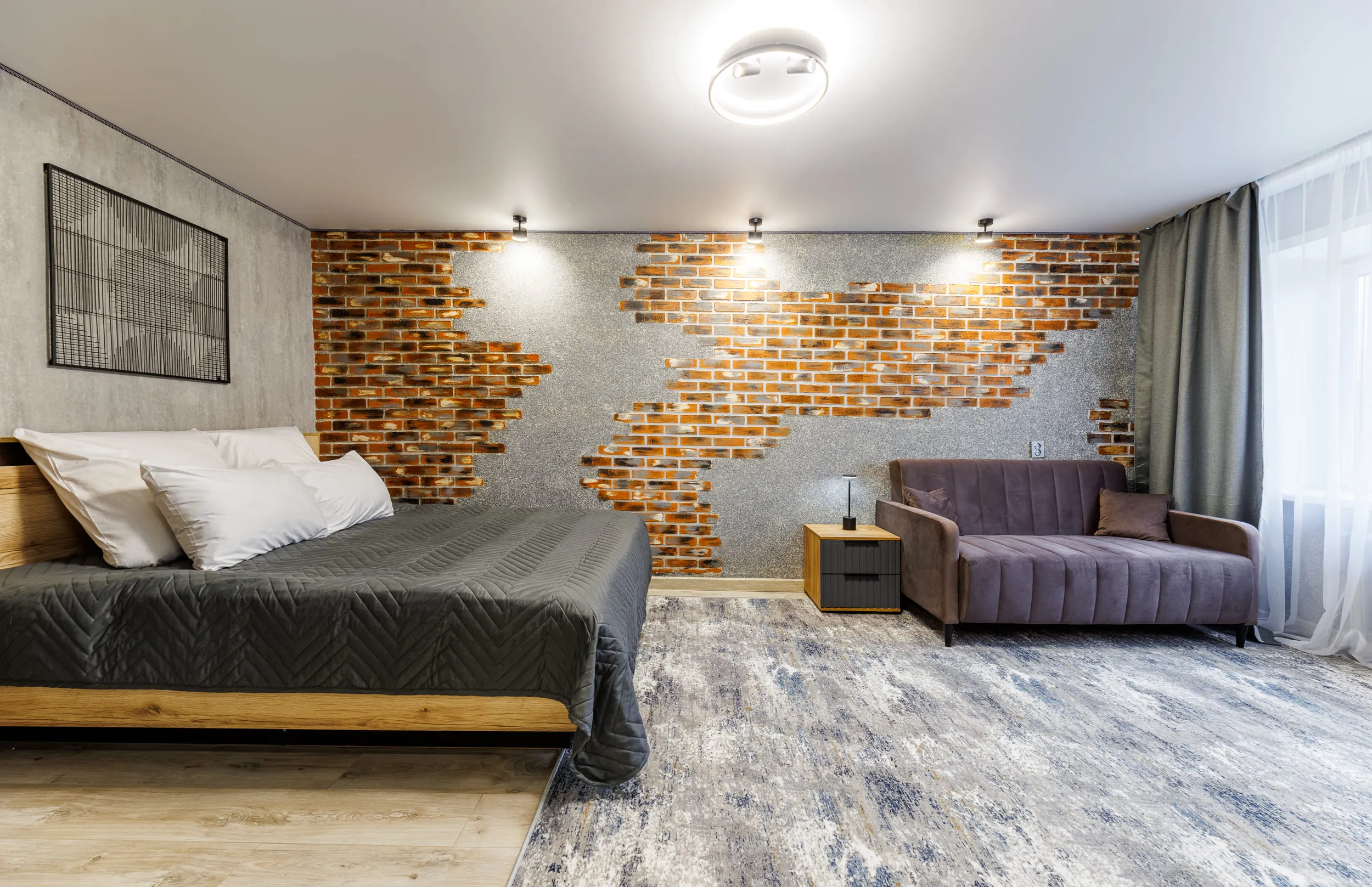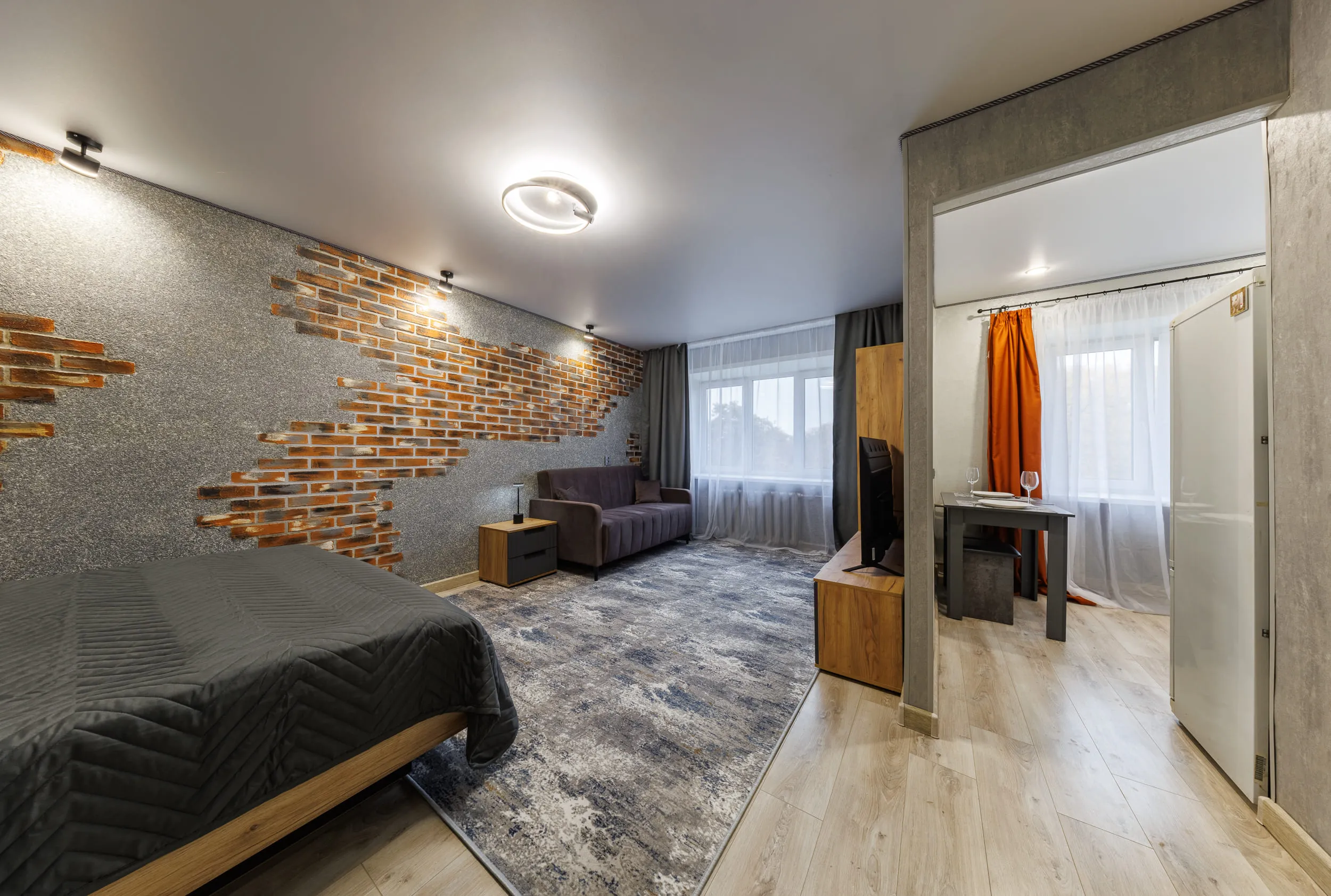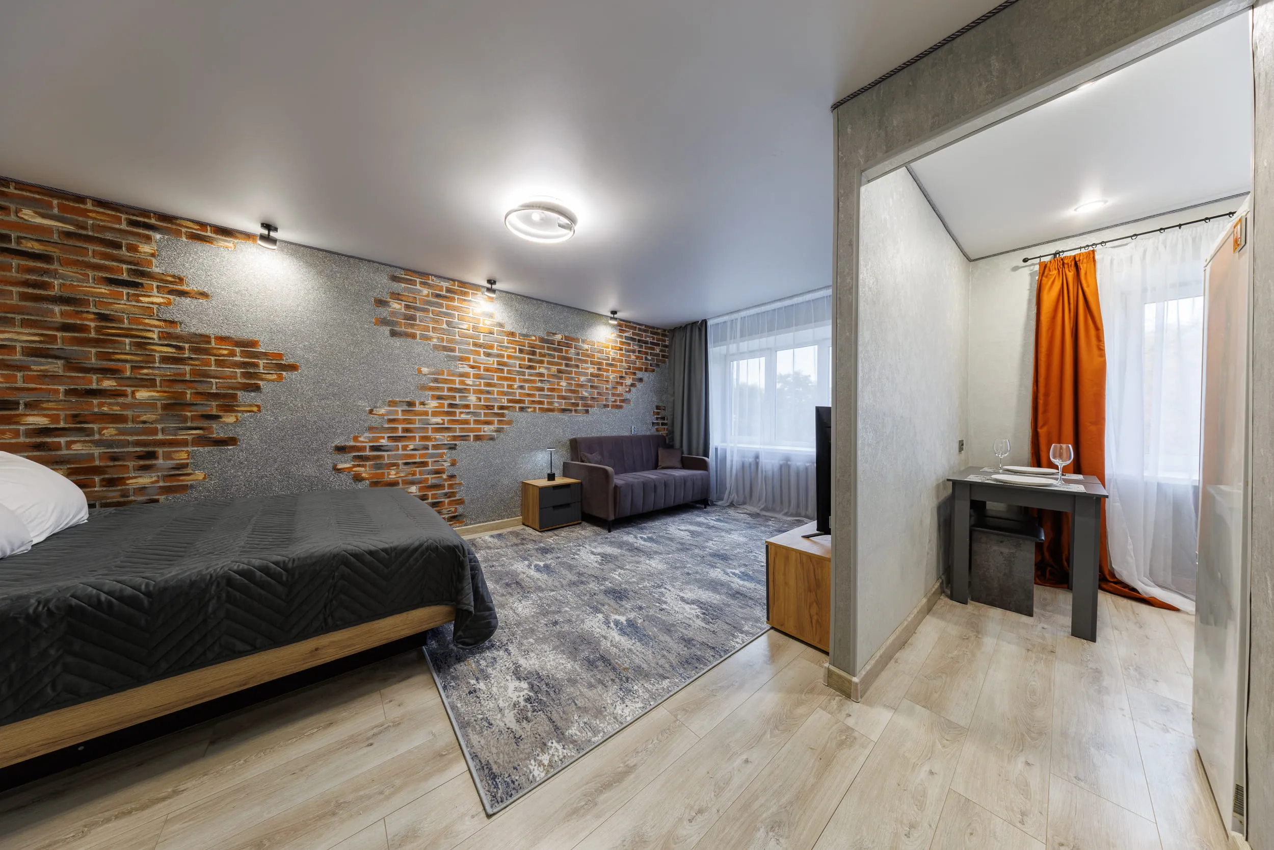 - Двуспальная кровать и раскладной диван