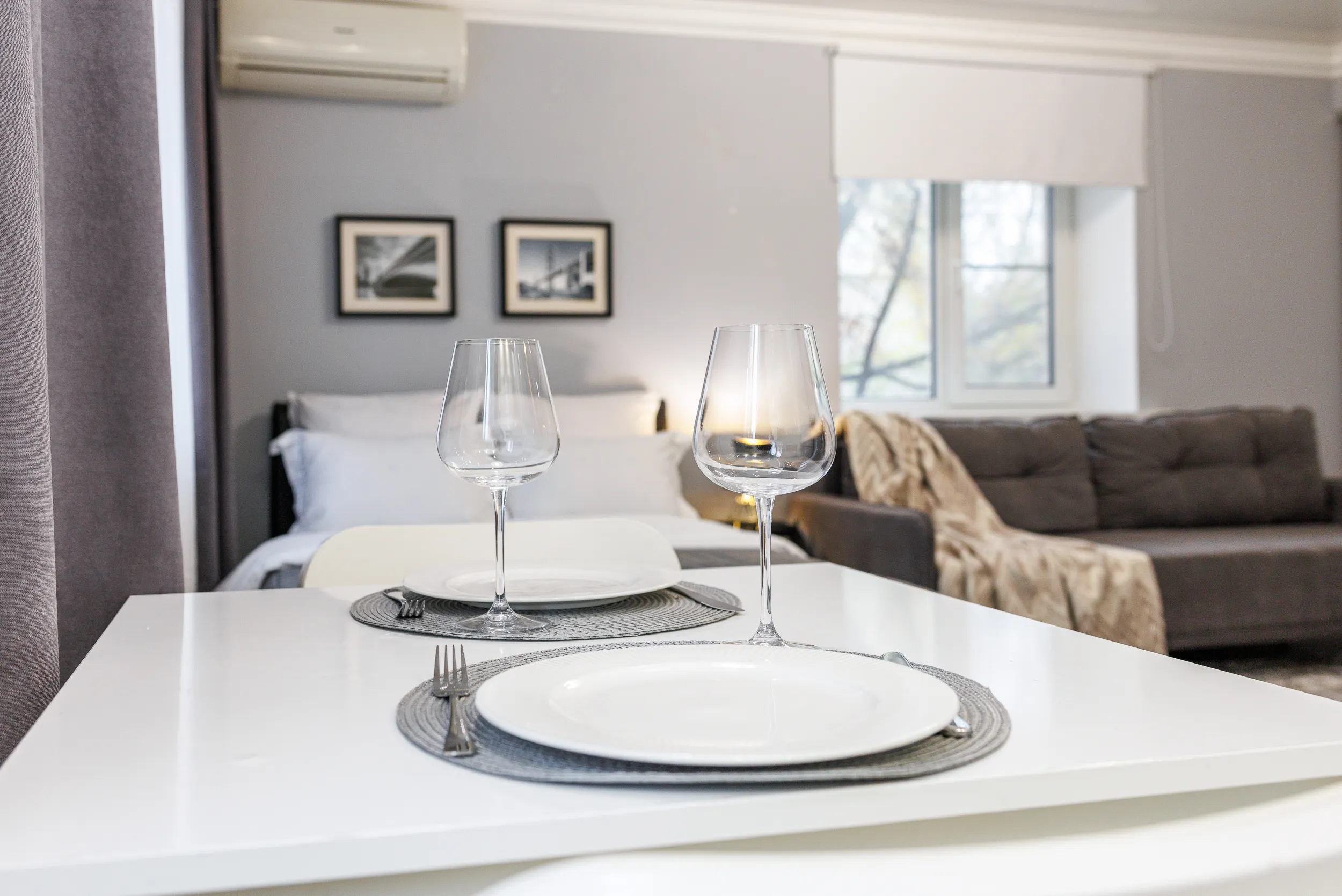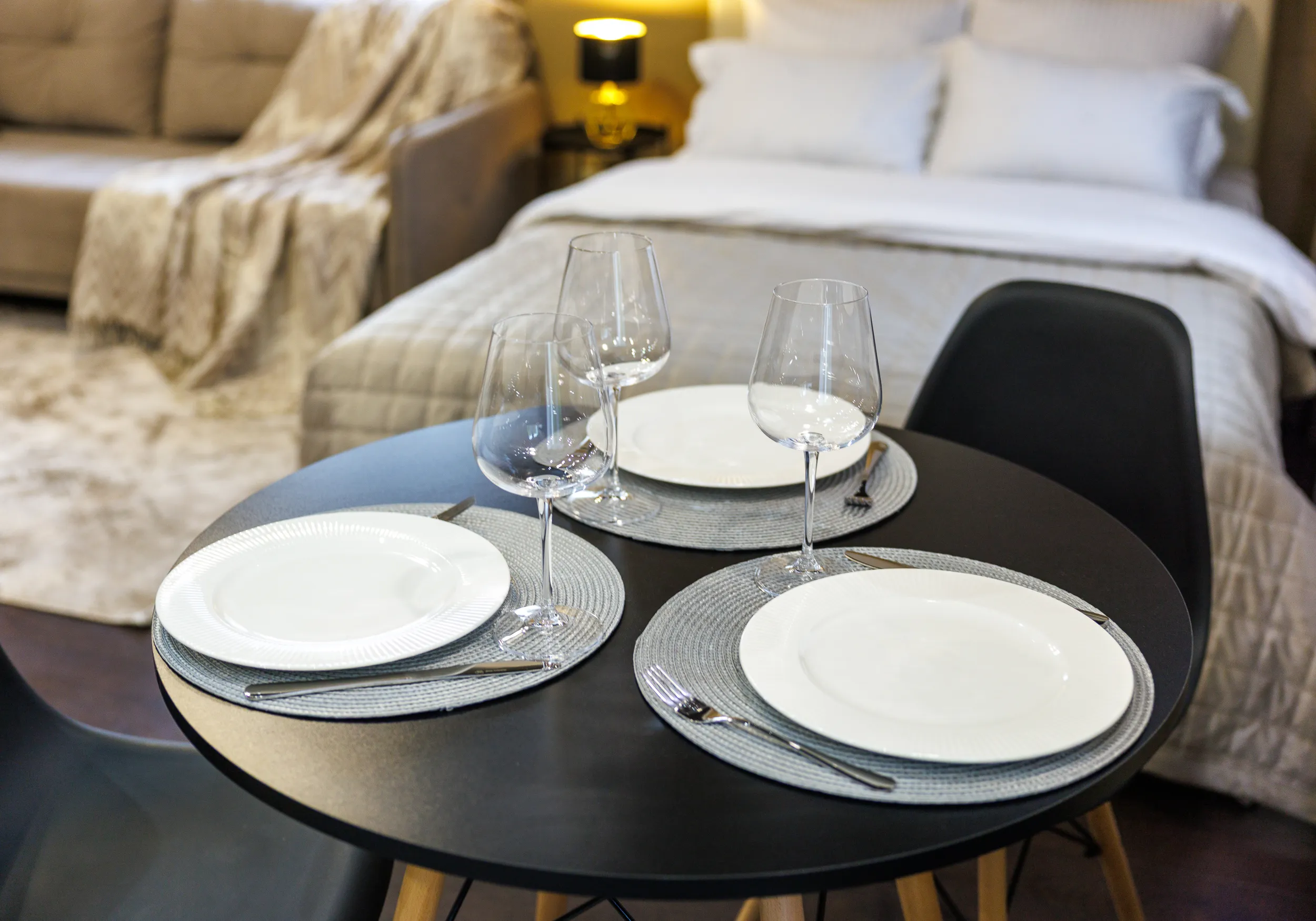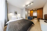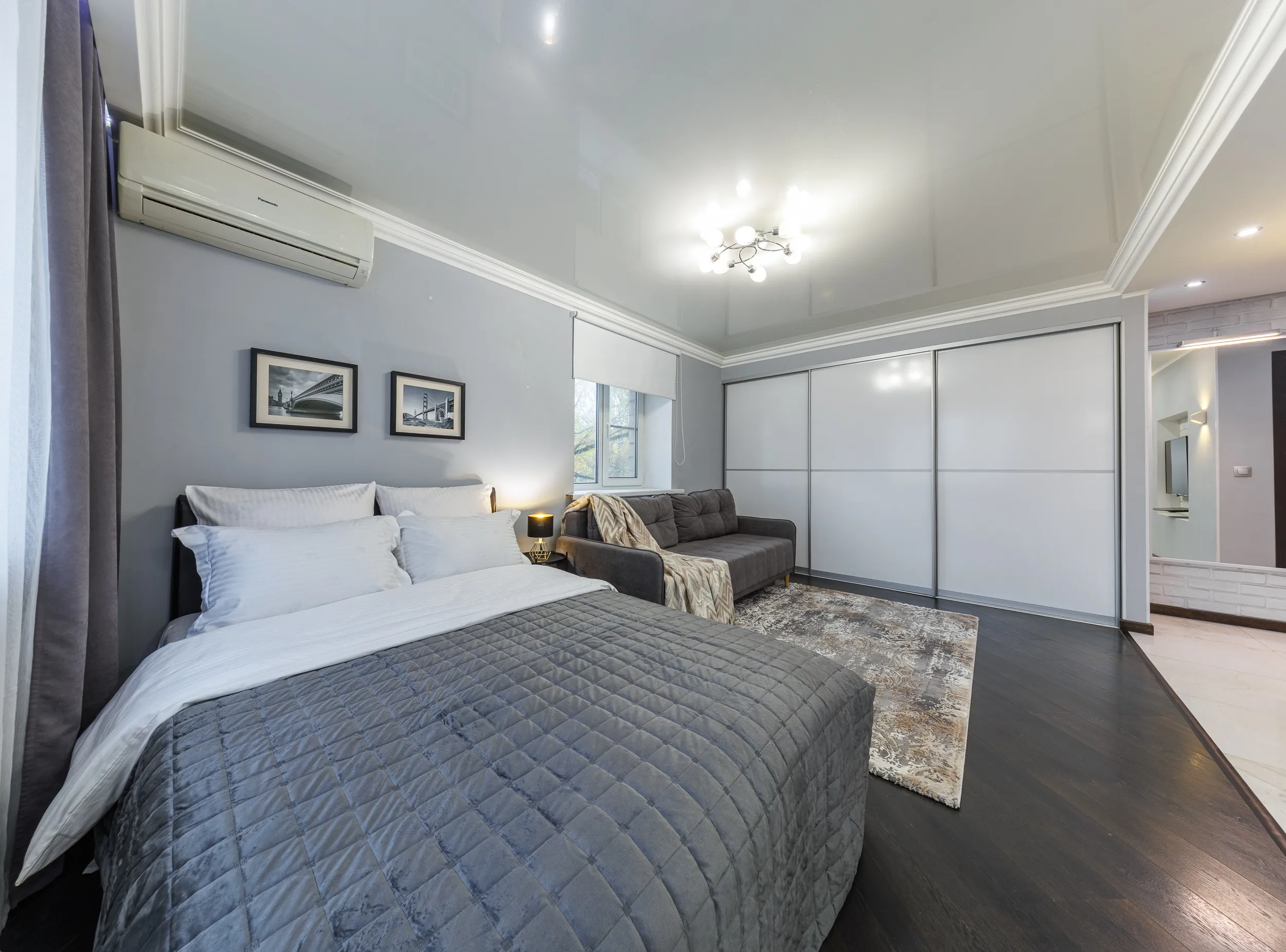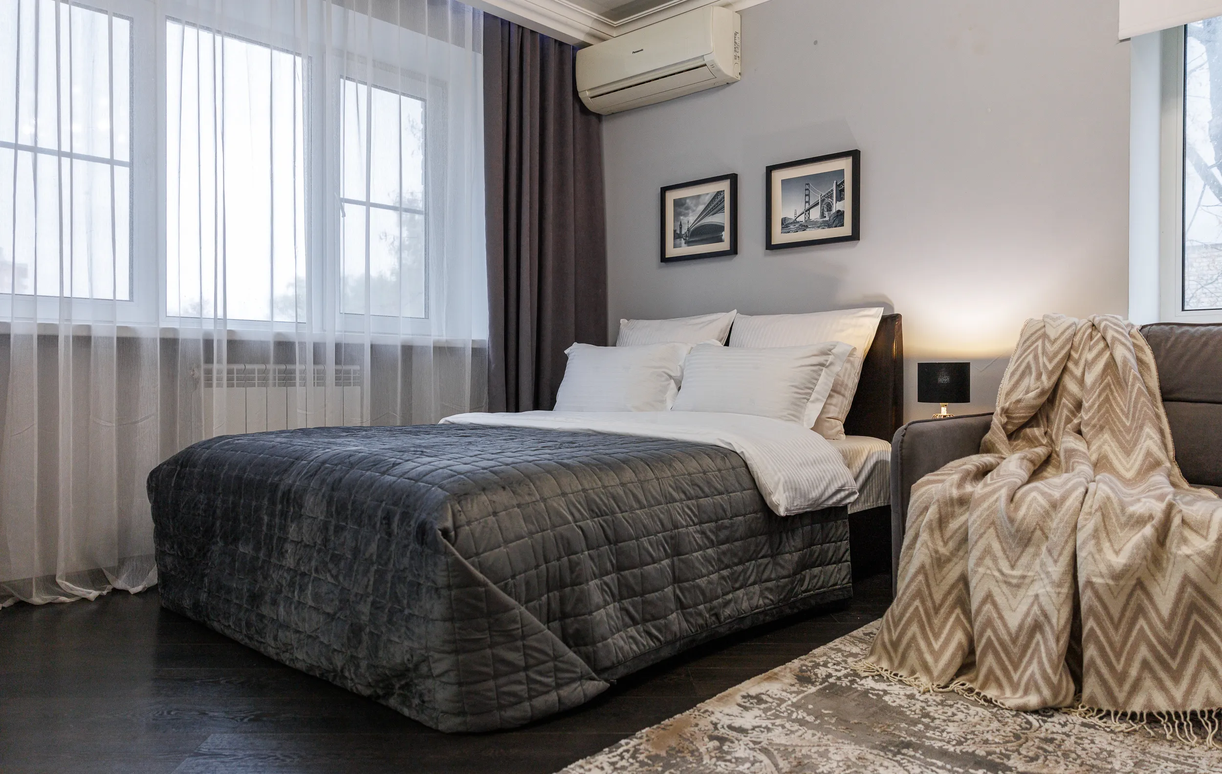 Двуспальная кровать с ортопедическим матрасом и удобный раскладной диван. Полноценная кухня с обеденной зоной. Необходимая бытовая техника и набор одноразовых ванных принадлежностей.