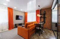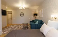 Просторная квартира оснащена: ЖК-телевизором, стиральной машинкой-автомат, удобном двуспальный диван, 2-а раскладных кресла-дивана. Для более приятного времяпрепровождения, в Вашем распоряжении безлимитный интернет WI-FI, цифровое TV. Кроме того, Вам предоставляется: фен, утюг, гладильная доска, постельное белье. Оборудованная кухня оснащена всей необходимой посудой и бытовой техникой – СВЧ-печь, холодильник, электрический чайник, газовая плита. Апартаменты расположены в г.Тула