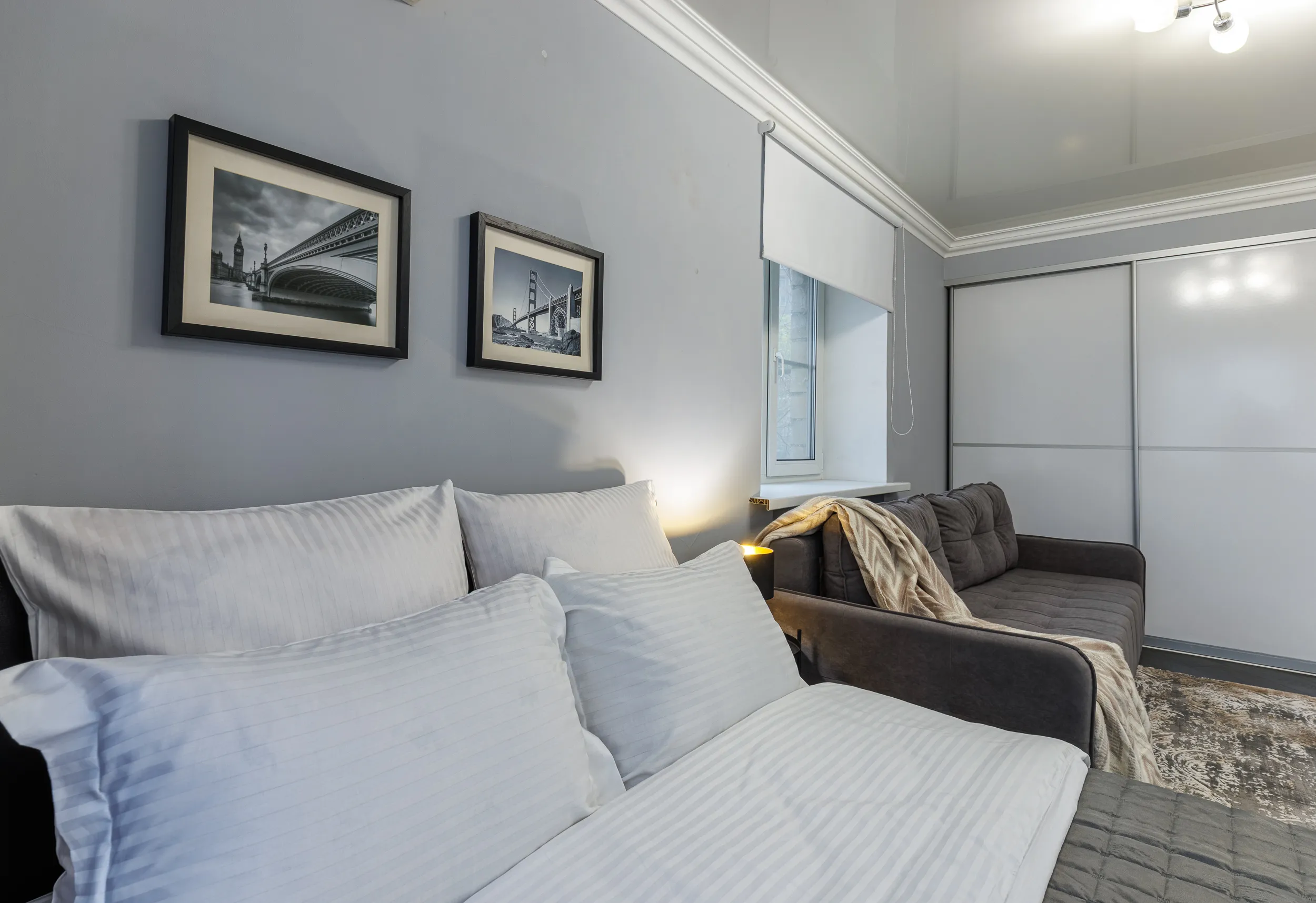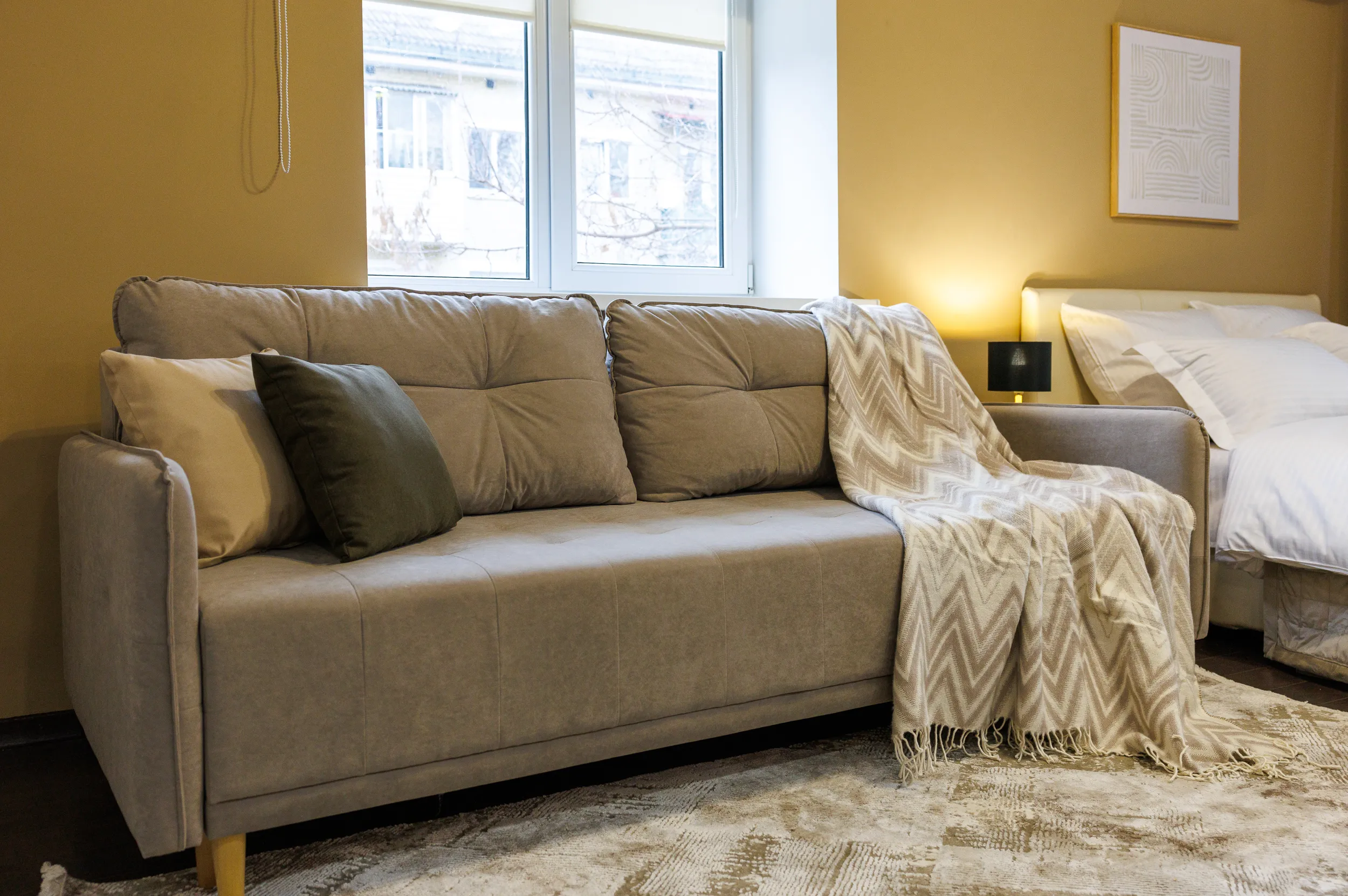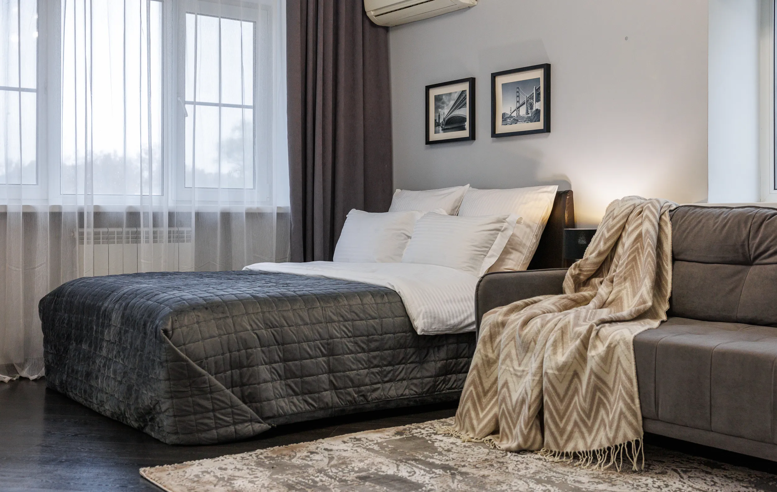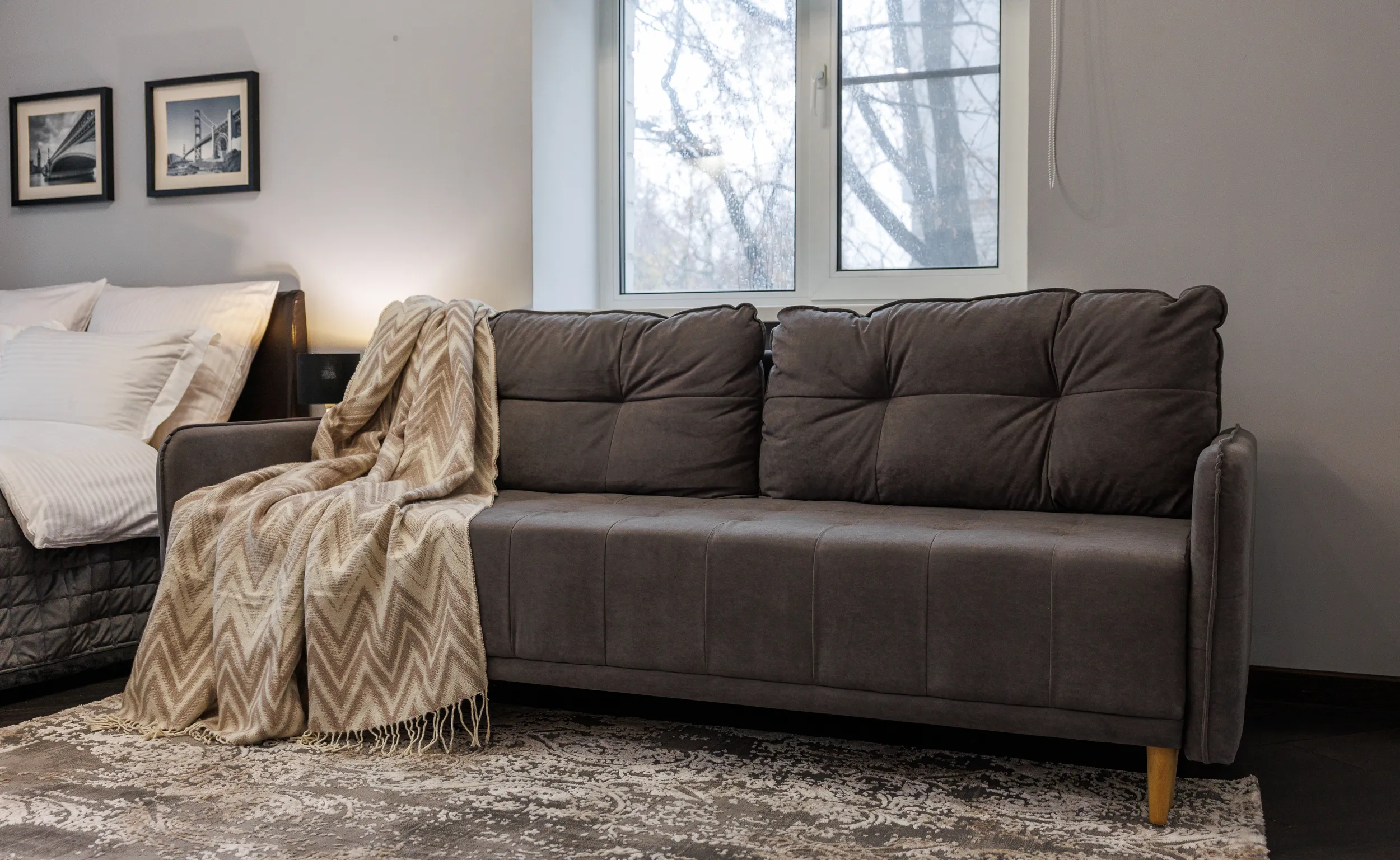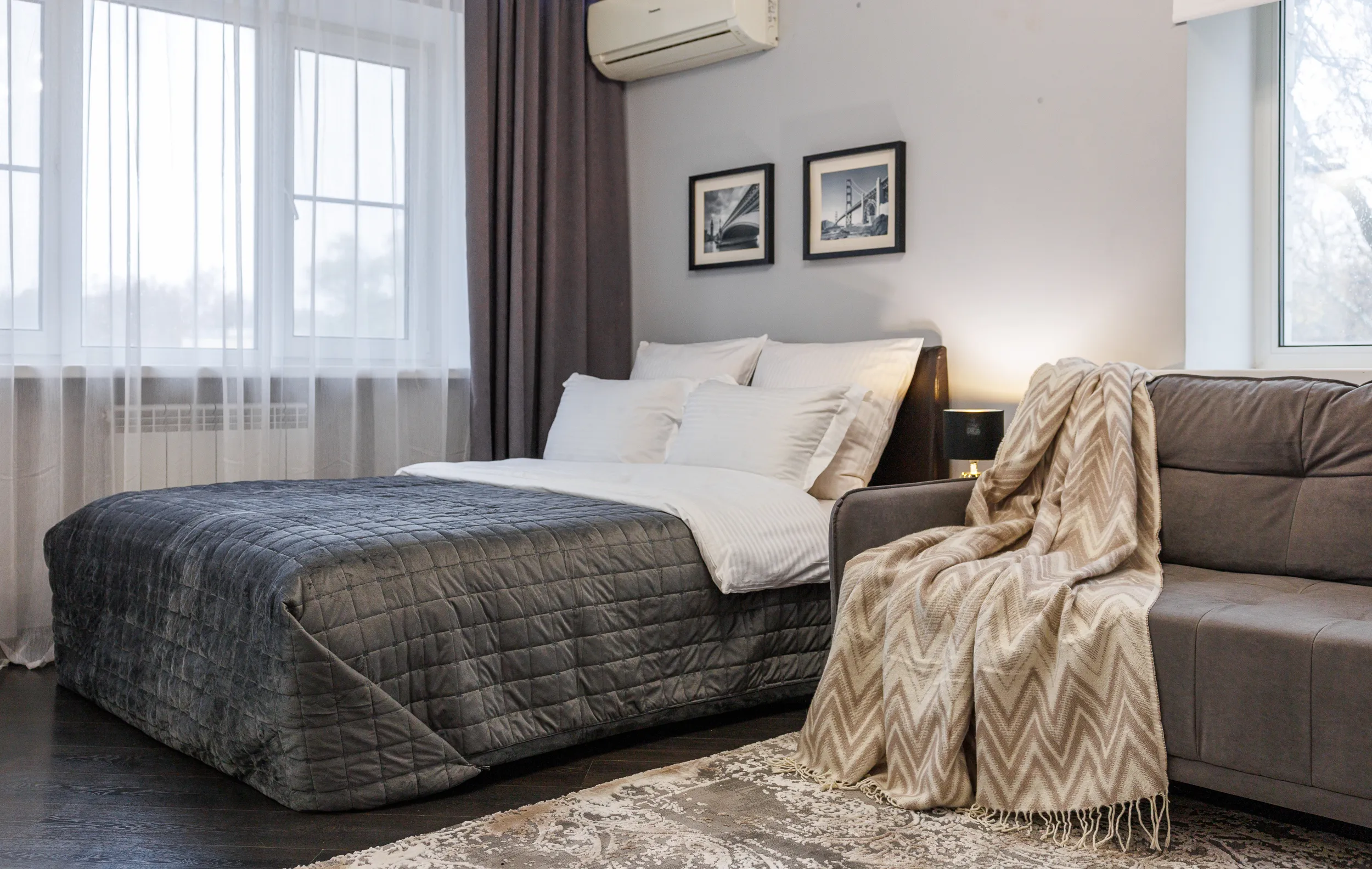 Спальные места - большой раскладной диван для одного-двух человек + кровать 140х200