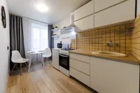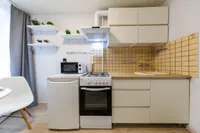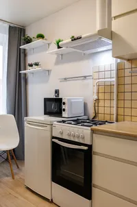 На всех наших объектах есть всё самое необходимое: фен, утюг, стиральная машина, чайник, микроволновка, плита, холодильник, столовые приборы и базовая посуда, чай и кофе.