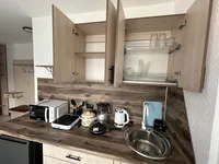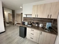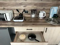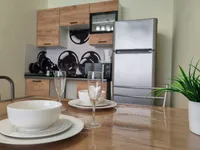 ✅ Кухонная зона с необходимой бытовой техникой, микроволновой печью, холодильником и всеми необходимыми принадлежностями.