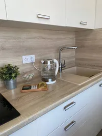 Стиральная машинка автомат, большой телевизор ЖК, кухонный гарнитур, холодильник, посуда для приготовления пищи, фен, утюг, гладильная доска, установлен водонагреватель - у вас всегда будет горячая вода. Комплект постельного белья, полотенца и туалетные принадлежности есть в наличии.
