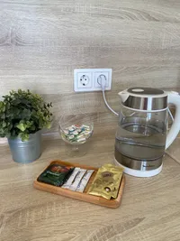 -Полностью оборудованная кухня: вся необходимая техника и посуда, чай, кофе.