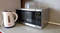 - На кухне имеется вся необходимая посуда для приготовления и принятия пищи; СВЧ-печь, эл.плита, холодильник, электрочайник. А также чай, сахар, соль, специи.